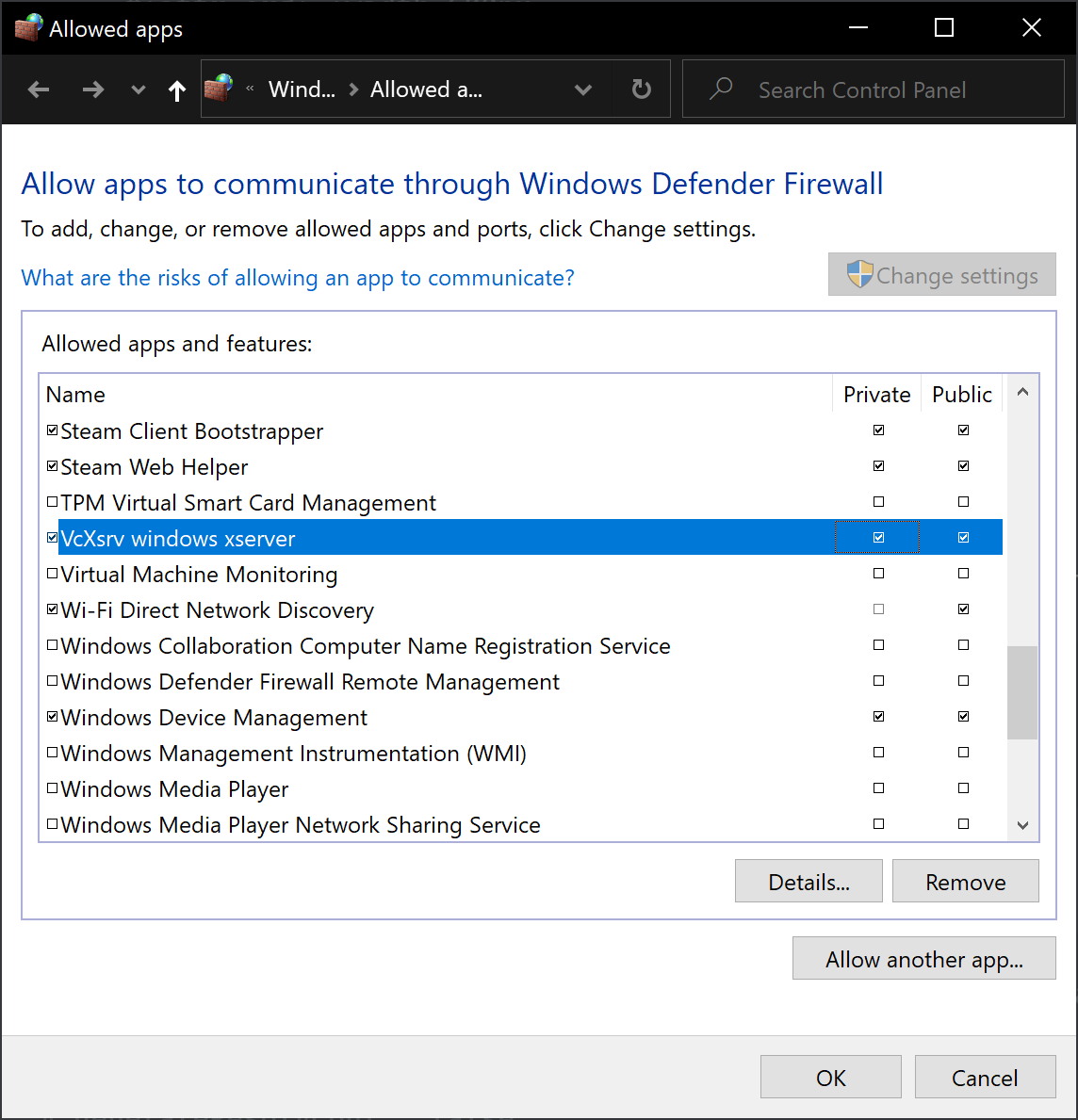 Control Panel\System and Security\Windows Defender Firewall\Allowed apps